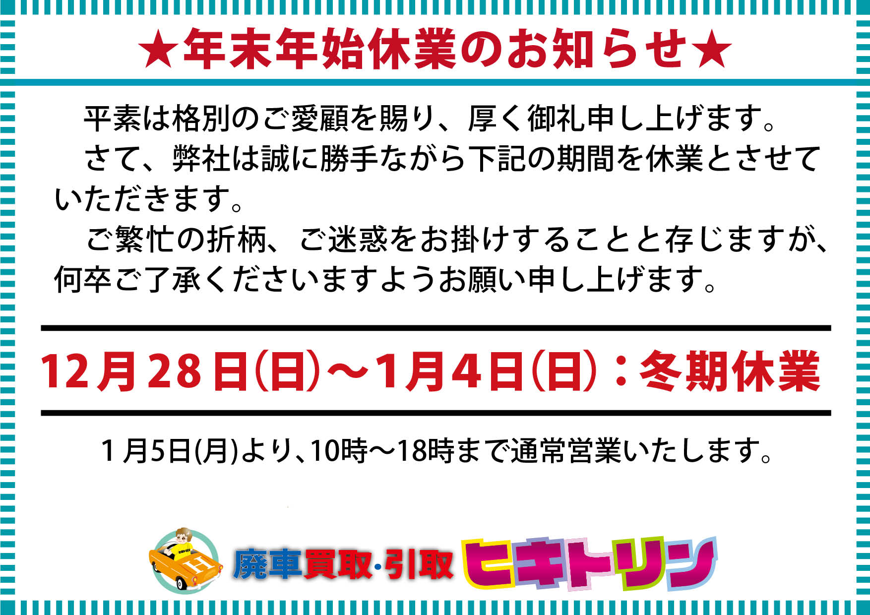 廃車、無料引取り・高価買取『ヒキトリン!』
